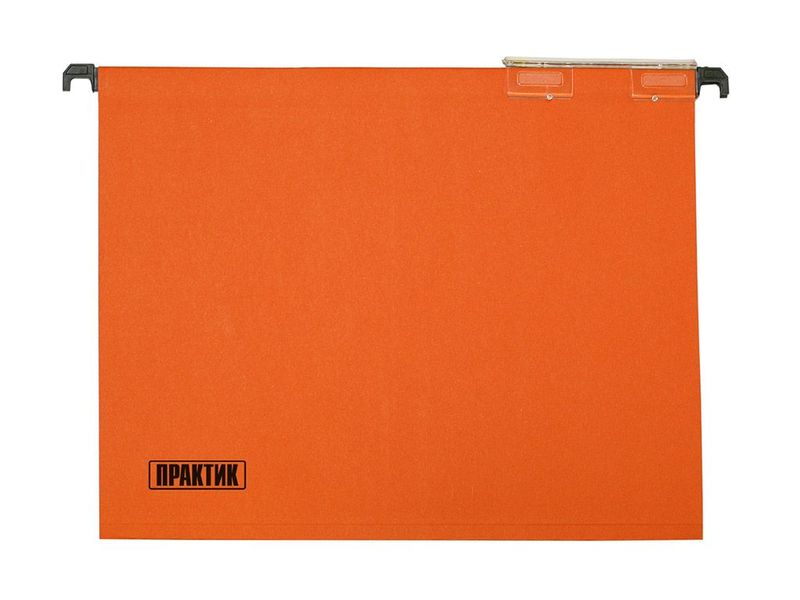 - Продукция изготовлена из прочного оранжевого картона с полимерными опорами, с помощью которых файл скользит по боковым ребрам ящика