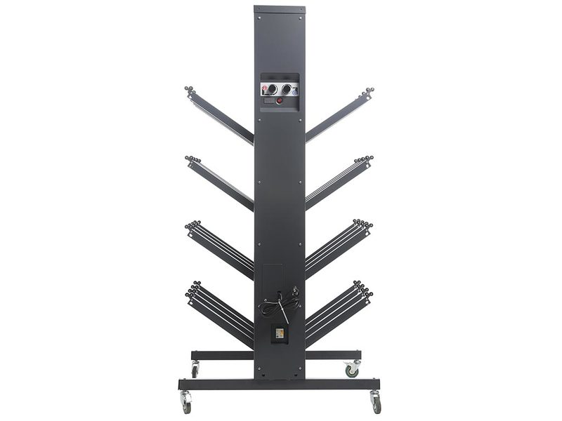 - Для удобства перемещения стойка снабжена резиновыми колесами, диаметр 75 мм (2 колеса поворотные со стопором, 2 колеса поворотные).